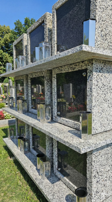 Designová alternativa ke standardnímu řešení kolumbárií. Moderní vzhled, čisté linie a reprezentativní provedení při zachování plné funkčnosti a dlouhé životnosti. Vhodné pro města a obce.